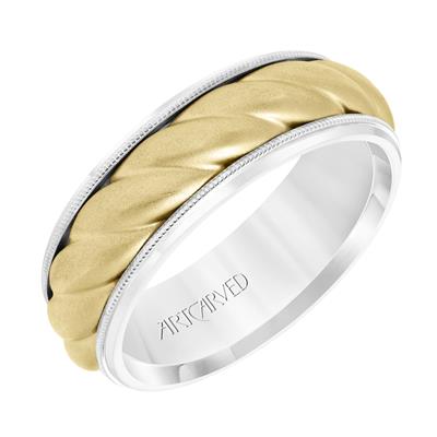 7MM Wedding Band with Soft Sand Finish, Oversized Rope, Milgrain Detail and Dome Profile