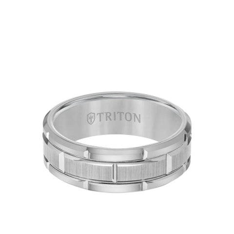 8mm Black Tungsten Carbide Bevel Edge Comfort Fit Band with Vertical Satin Finish Center and Bright Edges and Cuts