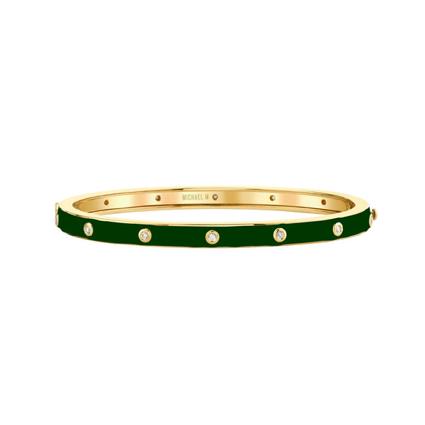 Drawing from the most iconic of the MICHAEL M design elements, the CHROMA Extruded Bezel Bangle makes the most chic statement in the most bold way. Super stackable or great on it's own and available in black, white, magenta, blue and green - this is a must have!