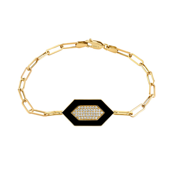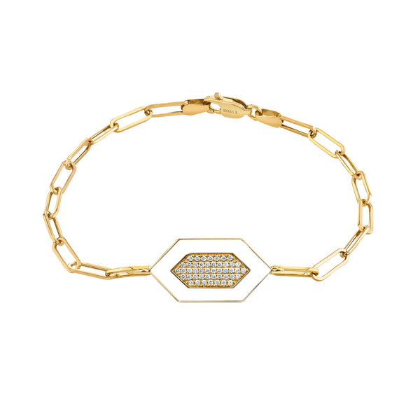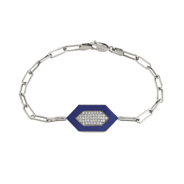 Colorful and sparkling, the CHROMA Pavé Hexagon Bracelet is a gorgeous way to add some fun to your arm stack! Available in black, white, magenta, blue and green, the heavily pavéd hexagon suspended on our favorite paperclip chain will make your day-to-night look!
