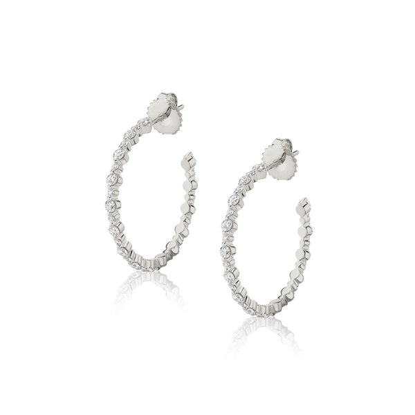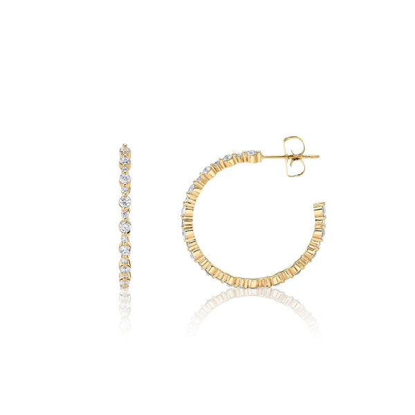 Feeling classic and modern at the same time? The Cloud Alternating Stone Hoops are here for you. We've taken the time-honored shared prong motif of one of our most popular engagement ring shanks and turned it into a huggie. We alternated the stone size to take it one step further for that extra flash of sparkle.