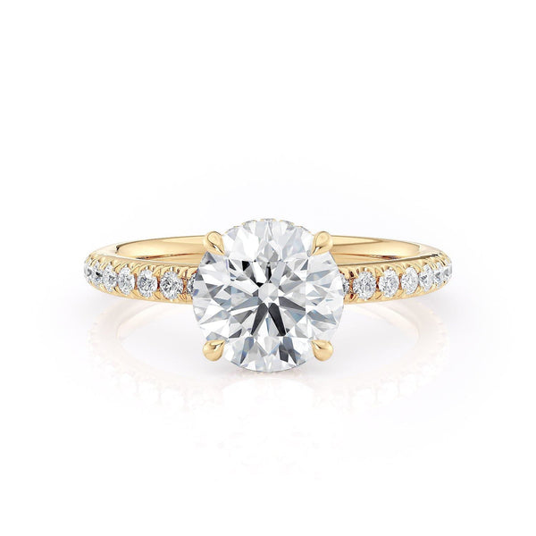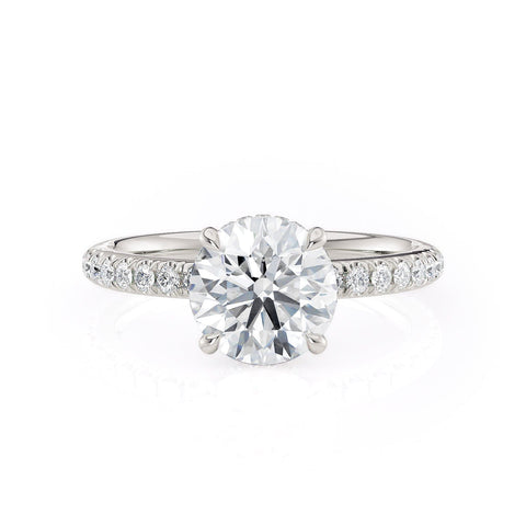 The esteemed Crown R742-1.5 ring features a beloved design that stands the test of time. Meticulously made with precision, it showcases an exquisite 1.5 carat round-cut diamond, accented by a shimmering diamond band and a hidden halo around the center stone.