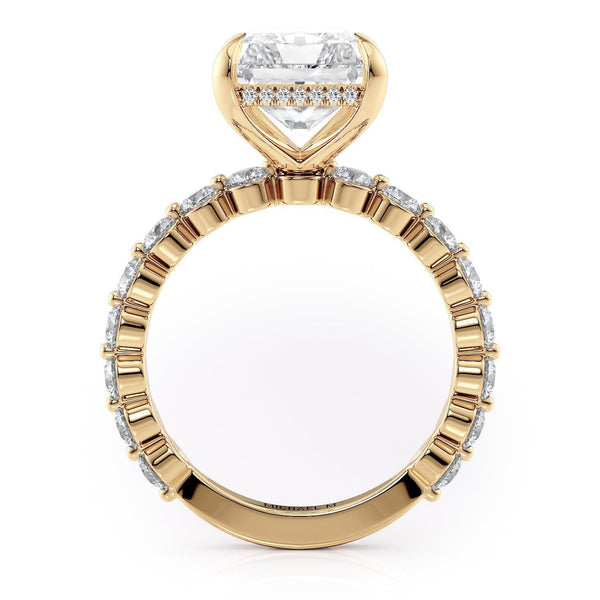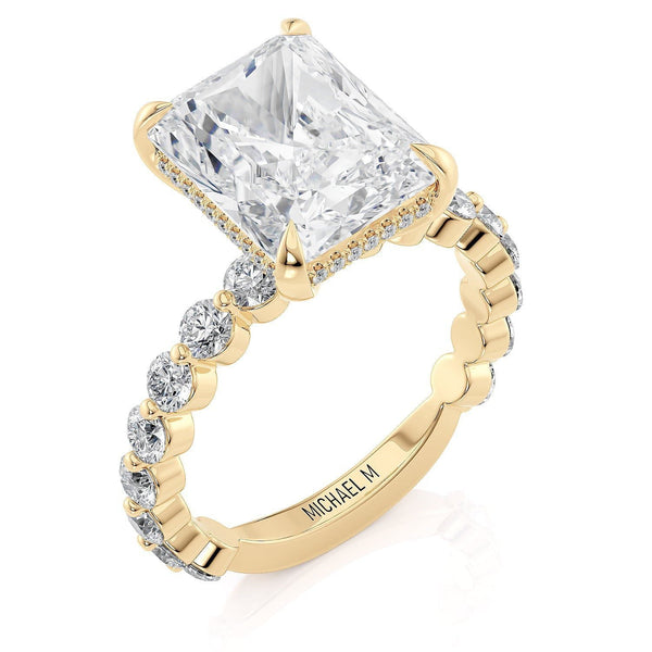 This MICHAEL M engagement ring is adorned with side diamonds handpicked by a certified MICHAEL M gemologist, each side stone has a minimum average color of G, a minimum average clarity of VS, and are hand-placed in an elegant prong setting by one of MICHAEL M’s master artisans.