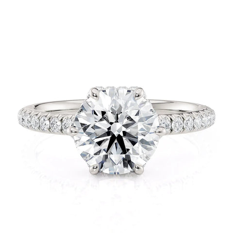 This MICHAEL M engagement ring is adorned with side diamonds handpicked by a certified MICHAEL M gemologist, each side stone has a minimum average color of G, a minimum average clarity of VS, and are hand-placed in an elegant prong setting by one of MICHAEL M’s master artisans.