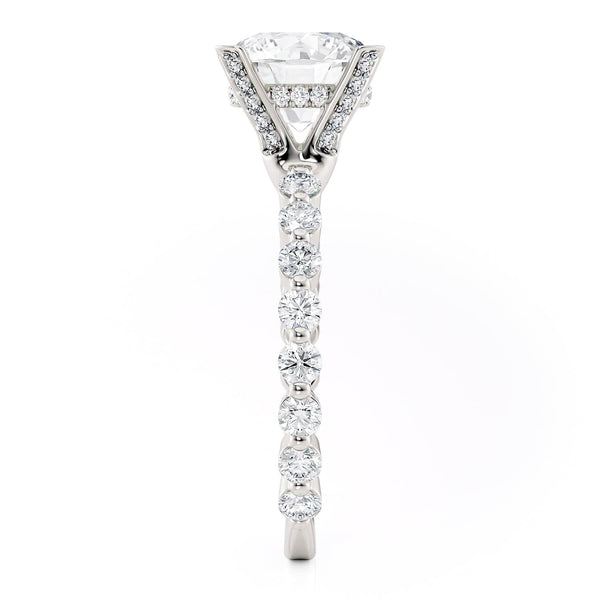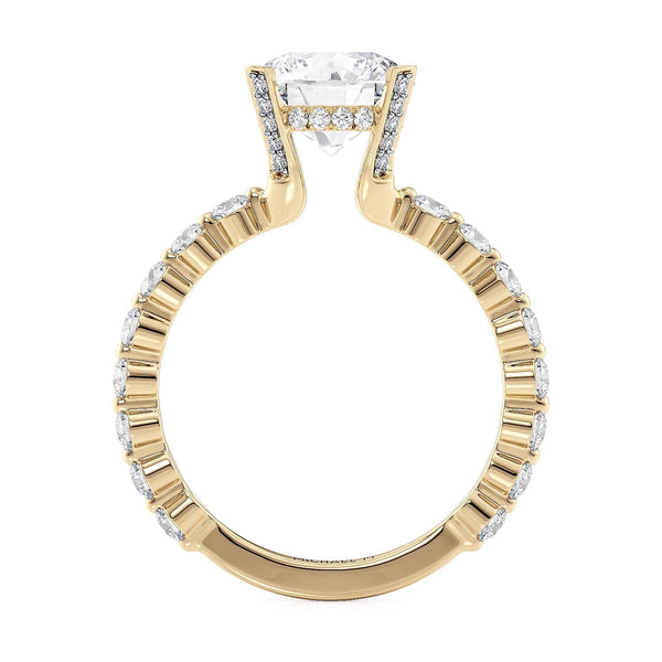 This MICHAEL M engagement ring is adorned with side diamonds handpicked by a certified MICHAEL M gemologist, each side stone has a minimum average color of G, a minimum average clarity of VS, and are hand-placed in an elegant prong setting by one of MICHAEL M’s master artisans.