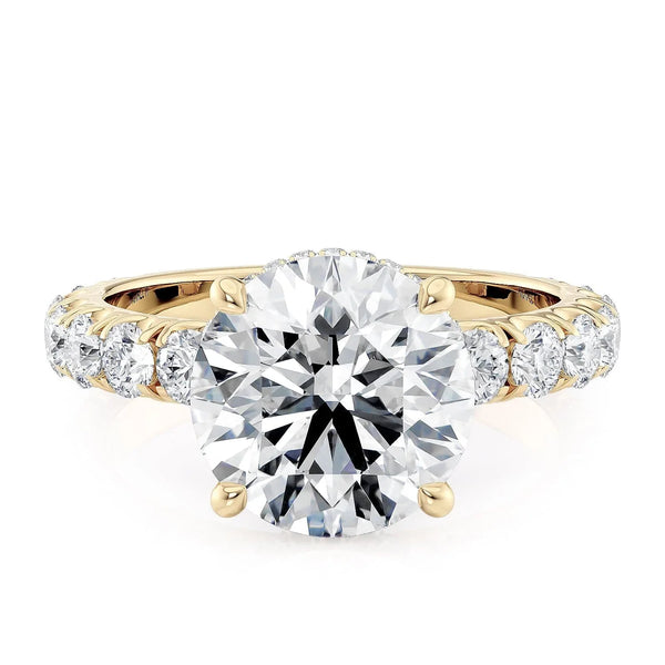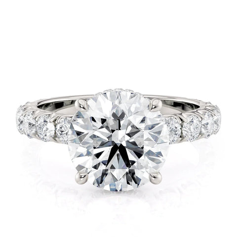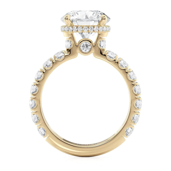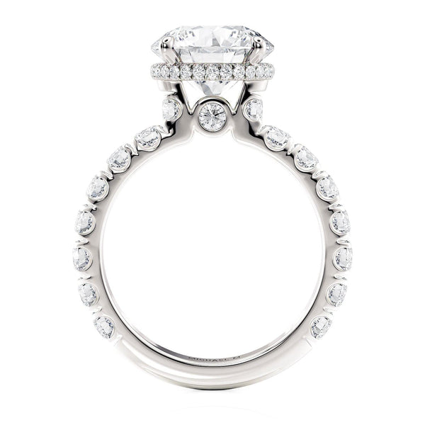 The Crown R793-3 showcases timeless elegance, expertly crafted with precision. Its diamond band, hidden halo, and bridge accent add to its refined design.