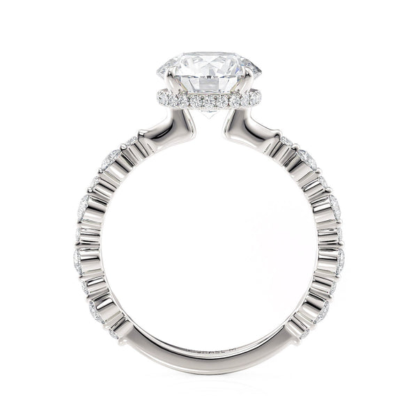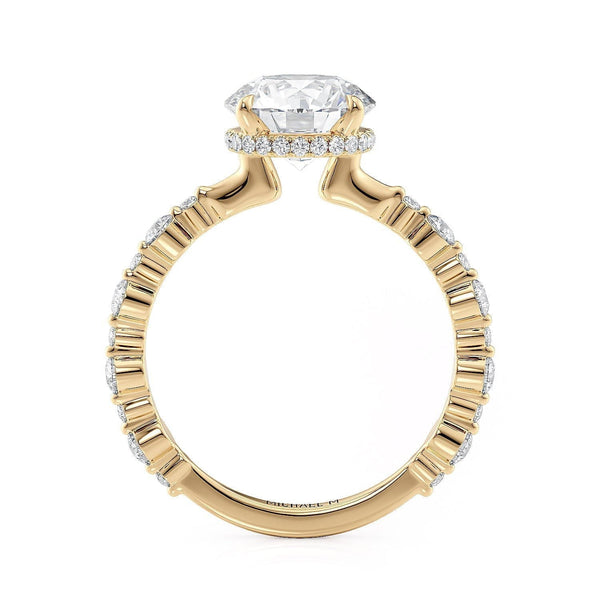 This MICHAEL M engagement ring is adorned with side diamonds handpicked by a certified MICHAEL M gemologist, each side stone has a minimum average color of G, a minimum average clarity of VS, and are hand-placed in an elegant prong setting by one of MICHAEL M’s master artisans.