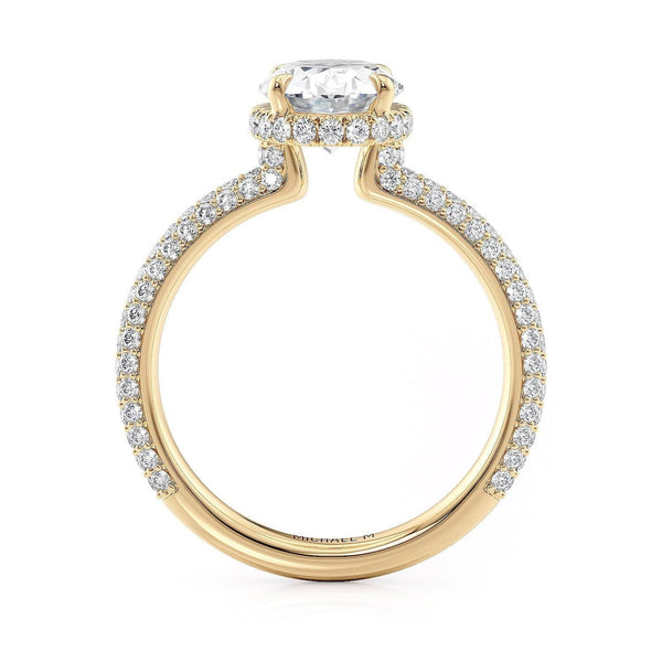 This MICHAEL M engagement ring is adorned with side diamonds handpicked by a certified MICHAEL M gemologist, each side stone has a minimum average color of G, a minimum average clarity of VS, and are hand-placed in an elegant prong setting by one of MICHAEL M’s master artisans.