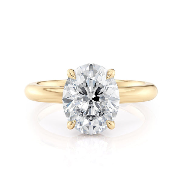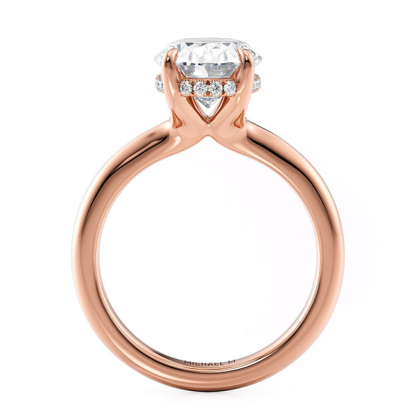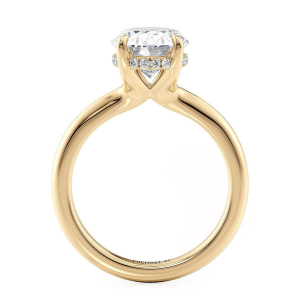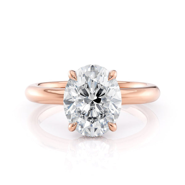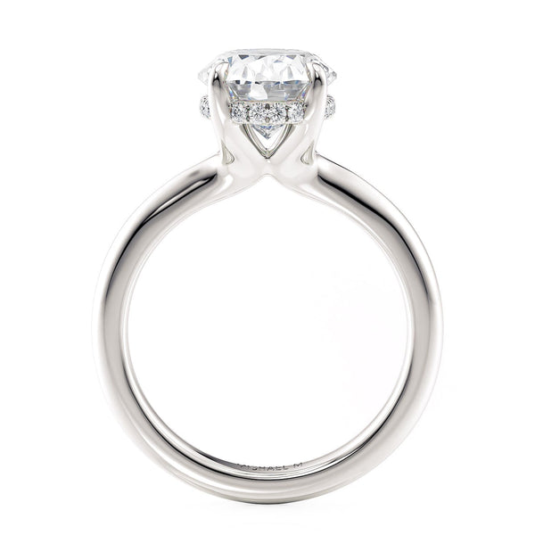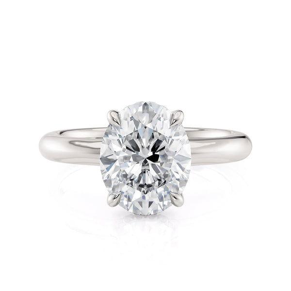 The Crown R812-3 Oval is a solitaire ring featuring a hidden halo. Maximize the beauty of your hand with the Crown R812-3 Oval. This stunning solitaire ring showcases a hidden halo, emphasizing the brilliance and sparkle of the center stone.