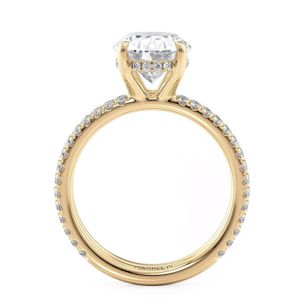 This MICHAEL M engagement ring is adorned with side diamonds handpicked by a certified MICHAEL M gemologist, each side stone has a minimum average color of G, a minimum average clarity of VS, and are hand-placed in an elegant prong setting by one of MICHAEL M’s master artisans.
