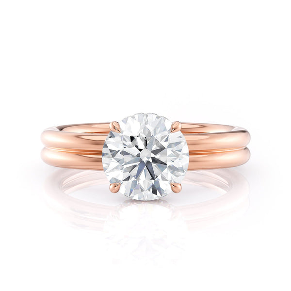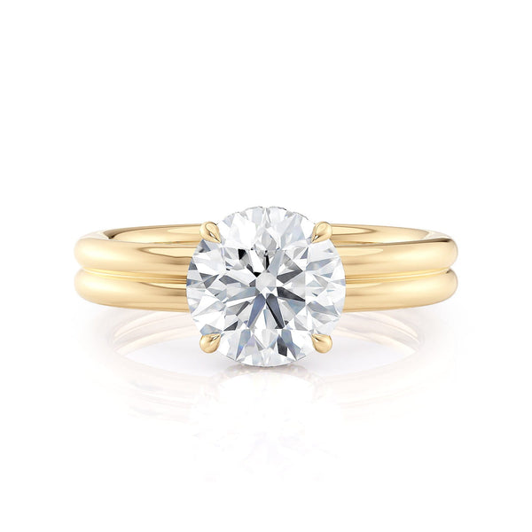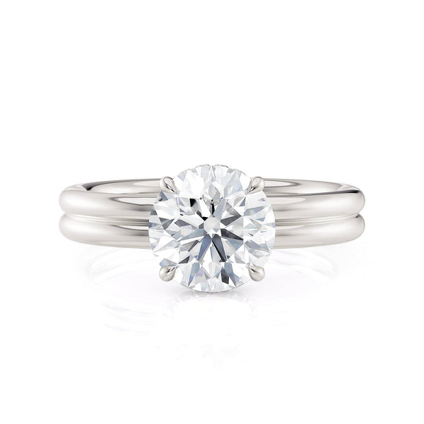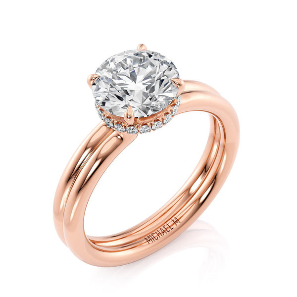 The Crown R819-2 offers a unique twist on the timeless solitaire ring design. Its intricate double band and hidden halo make it a standout piece.