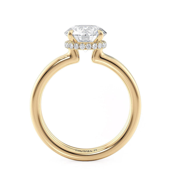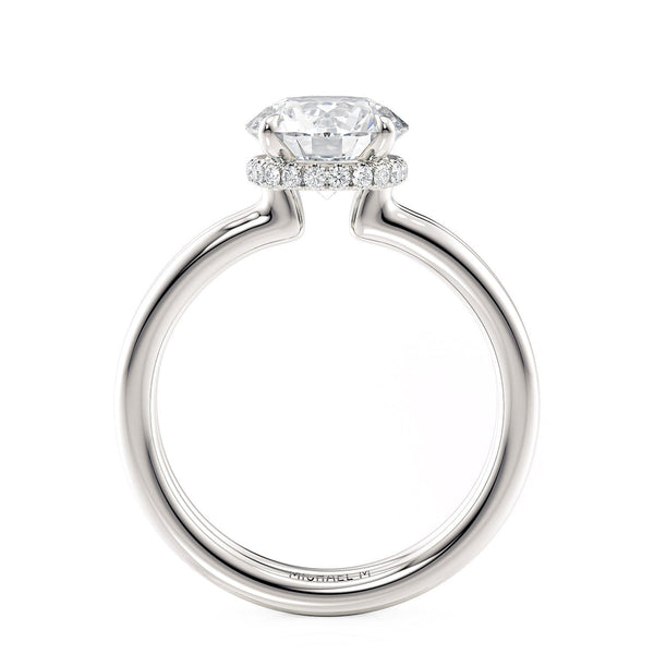 This MICHAEL M engagement ring is adorned with side diamonds handpicked by a certified MICHAEL M gemologist, each side stone has a minimum average color of G, a minimum average clarity of VS, and are hand-placed in an elegant prong setting by one of MICHAEL M’s master artisans.
