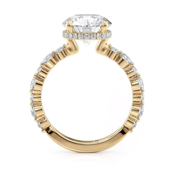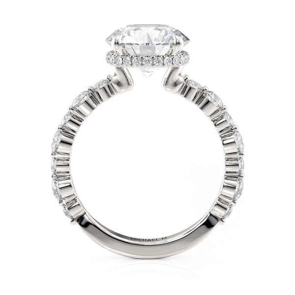 This MICHAEL M engagement ring is adorned with side diamonds handpicked by a certified MICHAEL M gemologist, each side stone has a minimum average color of G, a minimum average clarity of VS, and are hand-placed in an elegant prong setting by one of MICHAEL M’s master artisans.