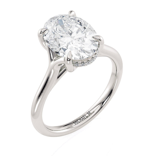This MICHAEL M engagement ring is adorned with side diamonds handpicked by a certified MICHAEL M gemologist, each side stone has a minimum average color of G, a minimum average clarity of VS, and are hand-placed in an elegant prong setting by one of MICHAEL M’s master artisans.