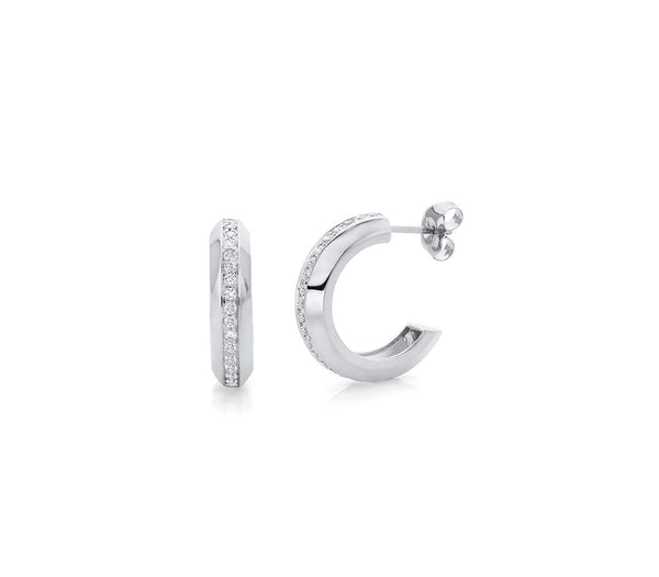 Large pave LUXE LINK hoop earrings are chunky hoops with a center row of pave. The angled side panels of the hoop give more dimension and highlight the center diamonds.