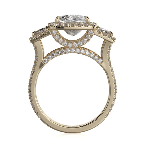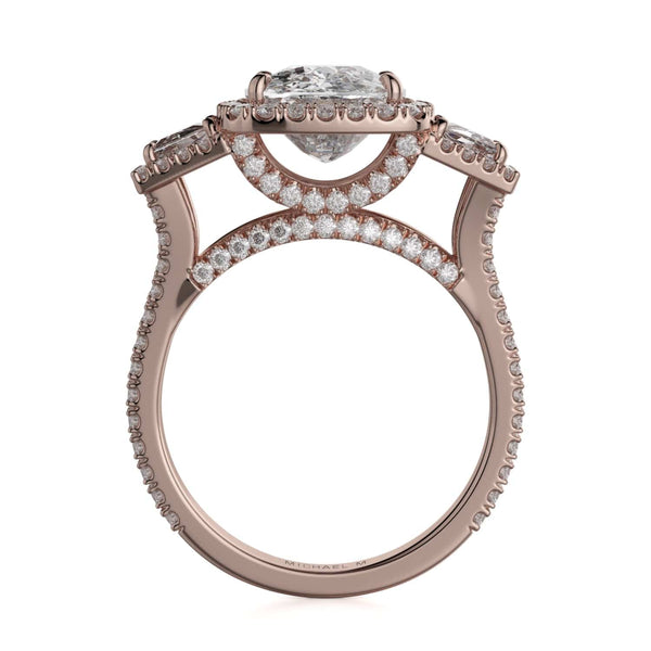 This MICHAEL M engagement ring is adorned with side diamonds handpicked by a certified MICHAEL M gemologist, each side stone has a minimum average color of G, a minimum average clarity of VS, and are hand-placed in an elegant prong setting by one of MICHAEL M’s master artisans.