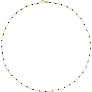 14K Yellow 2 mm Adjustable Black Enamel Bead 17-18" Chain