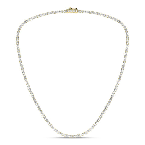 Elegant Lab Grown diamond 3 MM straight necklace, certified by IGI for quality assurance, set in 14KT yellow gold and adorned with 10 ctw of diamonds in a classic four-prong setting. The 18-inch necklace showcases diamonds distinguished by their EF color and VS clarity, coming together to craft a piece of sheer magnificence that perfectly complements your style.