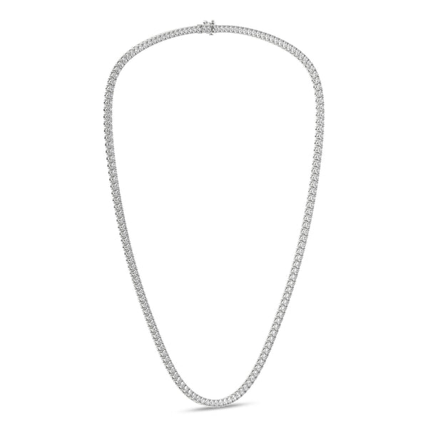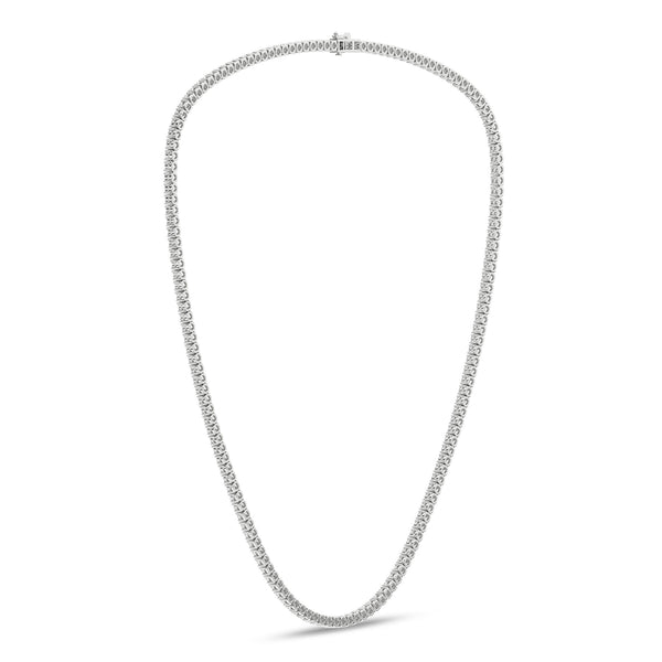 Elegant Lab Grown diamond 3.40 MM straight necklace, certified by IGI for quality assurance, set in 14KT white gold and adorned with 15 ctw of diamonds in a classic four-prong setting. The 20-inch necklace showcases diamonds distinguished by their EF color and VS clarity, coming together to craft a piece of sheer magnificence that perfectly complements your style.