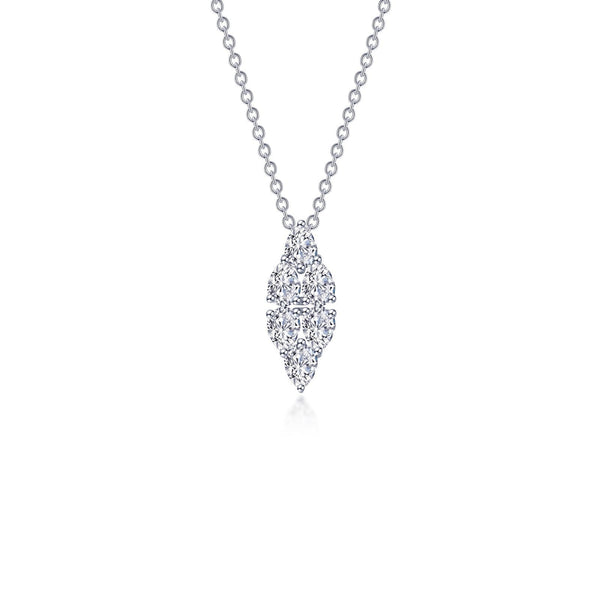 Simple and elegant. This charming cluster necklace is set with Lafonn's signature Lassaire pear-shaped simulated diamonds in sterling silver bonded with platinum.