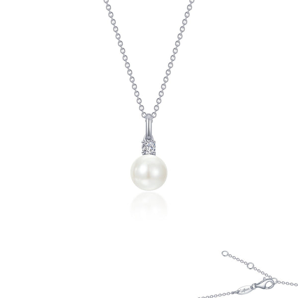 Elegant and sophisticated. This charming pendant features an 8mm cultured freshwater pearl and a bail set with Lafonn's signature Lassaire simulated diamonds in sterling silver bonded with platinum. The pendant comes on a 20-inch chain.