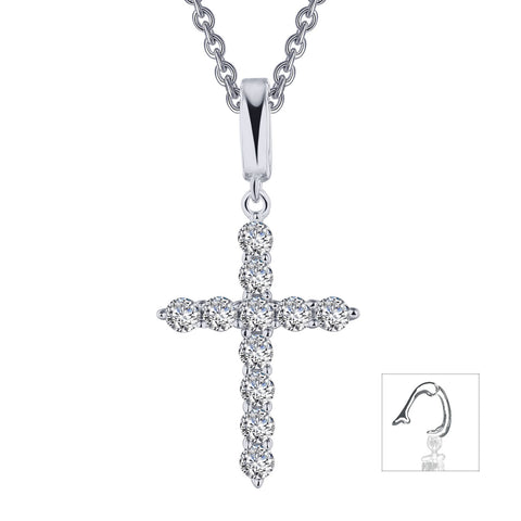 This classic cross pendant has a clip on it so that it can be clipped on a chain, a bracelet, or a necklace. The pendant is set with Lafonn's signature Lassaire simulated diamonds in sterling silver bonded with platinum and comes on an adjustable 20" chain.