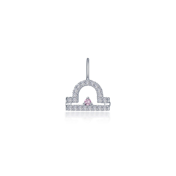 This pendant represents the zodiac sign of Libra (September 23 - October 22). This air sign values harmony and are natural peacemakers, seeking to create balance in their lives and relationships. Crafted with Lafonn's signature Lassaire simulated diamonds and a simulated pink diamond in sterling silver bonded with platinum. Pink promotes harmony, balance, diplomacy, and love.