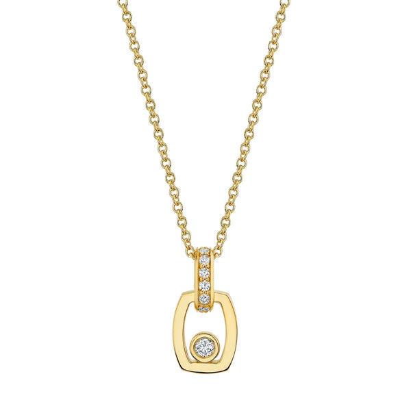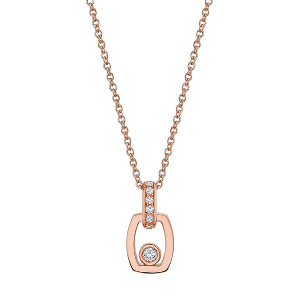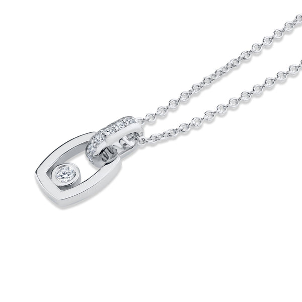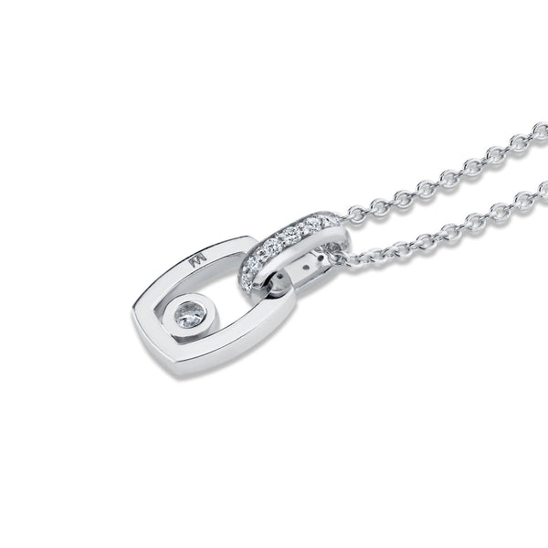 This pendant features a refined link design, expertly crafted to showcase both pavé and bezel-set diamonds that amplify its brilliance and ensure lasting durability. The pavé diamonds add a delicate shimmer, while the bezel settings provide secure protection for each stone, making the piece resilient for everyday wear.