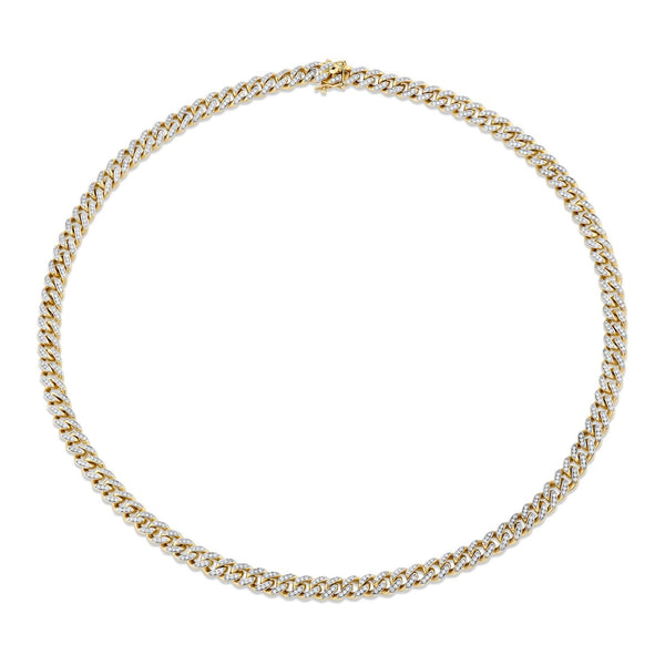 The Mens pave 8mm cuban chain necklace is known for its thick, interlocking links that lie flat against the skin, creating a bold and masculine look. The pavé Cuban chain exudes opulence and sophistication with each link embellished with natural diamond pave. It's a versatile necklace that can elevate both casual and formal attire, reflecting a sense of style and confidence. 23.5" length 8mm wide