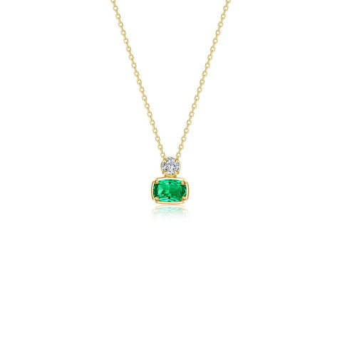 Elegant with modern flair. This necklace features a cushion-cut simulated emerald and Lafonn’s signature Lassaire simulated diamond, set in sterling silver plated with gold. The rich green stone contrast beautifully with the brilliant white.
