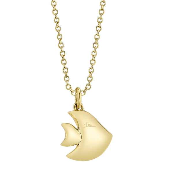 0.05CT DIAMOND & 0.02CT BLUE SAPPHIRE 14K Y/G FISH NECKLACE