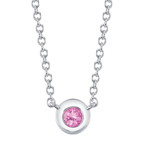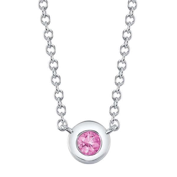 0.07CT 14K W/G PINK SAPPHIRE BEZEL NECKLACE