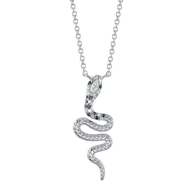 0.08CT BLACK & WHITE DIAMOND & 0.01CT EMERALD 14K W/G SNAKE NECKLACE