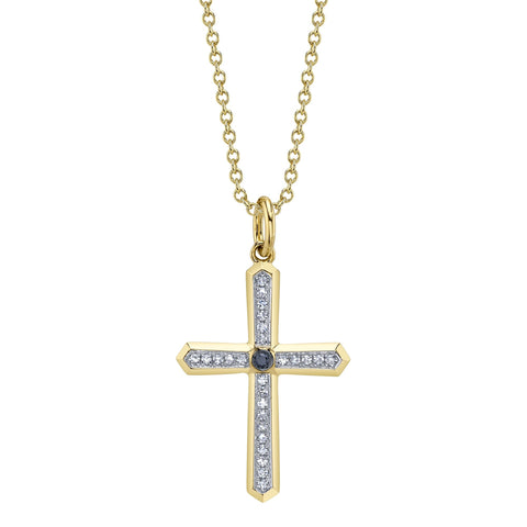 0.08CT 14K Y/G BLACK & WHITE DIAMOND CROSS NECKLACE