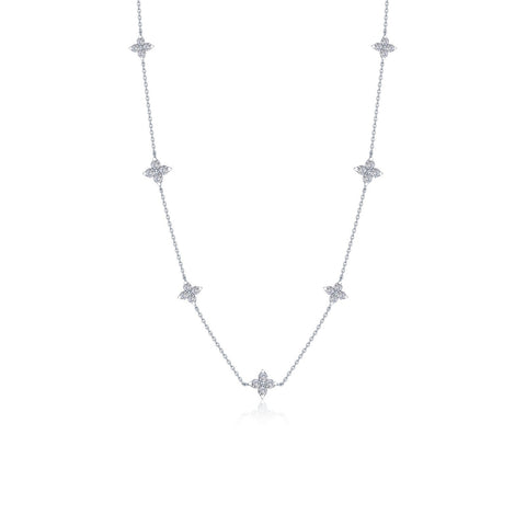 The perfect blend of nature-inspired charm and refined luxury. This flower-inspired design represents the powerful energy that brings forth new life. This necklace bring a timeless elegance to any occasion. Set with Lafonn's signature Lassaire simulated diamonds in sterling silver bonded with platinum.