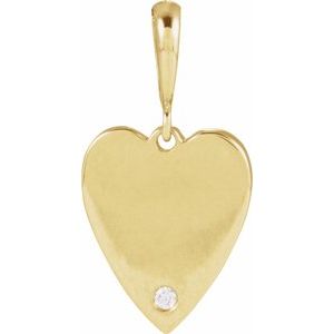14K Yellow .01 CT Natural Diamond Engravable Heart Pendant