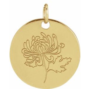 14K Yellow Chrysanthemum November Birth Flower Pendant