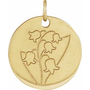 14K Yellow Lily of the Valley May Birth Flower Pendant