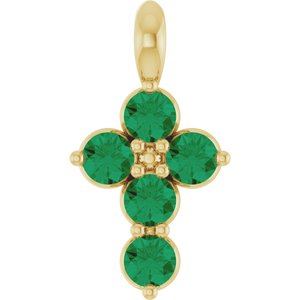 14K Yellow Natural Emerald Cross Pendant