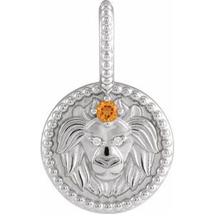 Sterling Silver Natural Citrine & .005 CTW Natural Diamond Leo Charm/Pendant