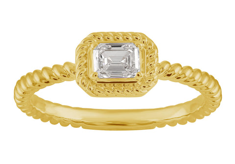 This fashion diamond ring is available in 14K Yellow Gold. There are a total of 1 stones. There are emerald cut diamonds with a total carat weight of 0.31ct set in a Bezel Set setting
