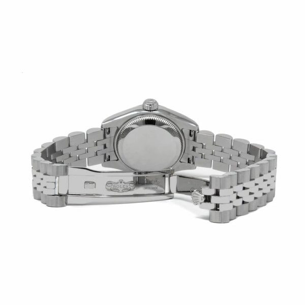 Pre-owned Ladies Rolex Datejust ref 179174 (2007 - 2008) embodies elegance and versatility with its stainless steel and 18k white gold finish. This 26mm women's Rolex features a classically elegant white dial decorated with silvered Roman numerals and a date window at 3 o'clock with the brand's signature Cyclops lens. Its robust waterproof Twinlock screw-down crown ensures superior water resistance, adding to the watch's durability. The iconic Jubilee bracelet, introduced alongside the Datejust in 1945, enhances the watch’s jewelry-like appeal, providing comfort and style. With its refined design and practical features, the Lady-Datejust Ref. 179174 perfectly combines luxury and everyday wearability. This ladies Rolex is pre-owned, good conditions and it comes with a Rolex travel box.