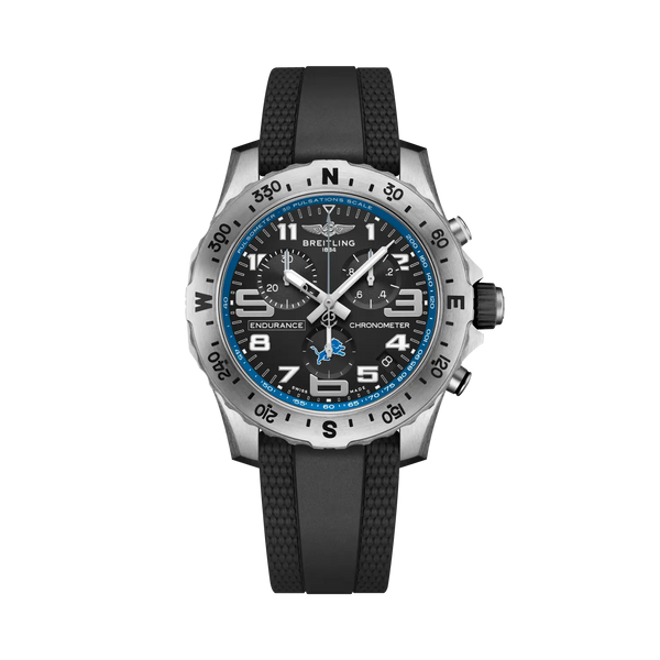 A match-up as exciting as Super Bowl. Breitling, the Official Timepiece Partner of the NFL, celebrates all 32 teams with the Endurance Pro NFL Team Editions. Crafted from ultra-light titanium, each 44 mm chronograph features your team’s logo in the subdial at 6 o’clock, a solar compass, and a pulsometer scale in team colors—ready for every spike in heart rate when the game heats up. The NFL shield is engraved on the caseback, and every watch comes on a comfortable, water-resistant rubber strap. The Endurance Pro blends high-performance features with bold design to create the ultimate athleisure watch. Whether you’re representing on game day or every day, this is your ultimate fan gear—engineered with Breitling precision and built to go the distance.