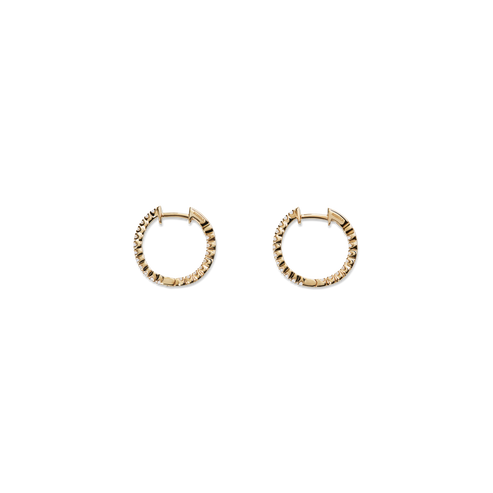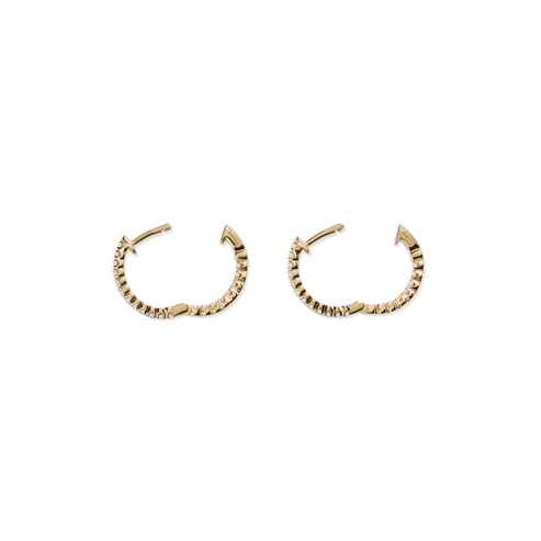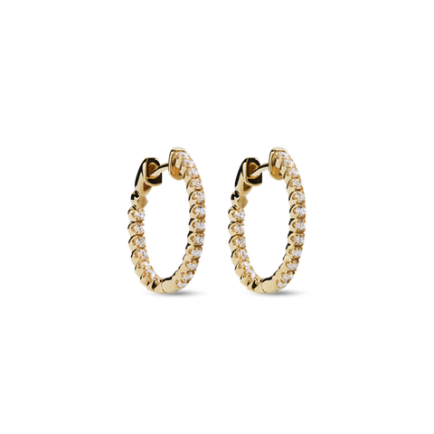 Elegant from every angle, these Diamond Hoops feature an eternity design for an unmistakably classic statement. Crafted meticulously from white or yellow gold, Brilliant Cut Diamonds are placed along the inner and outer edges for maximum sparkle. Featuring a secure hinge-lock closure, these iconic staples can be dressed up or down effortlessly.