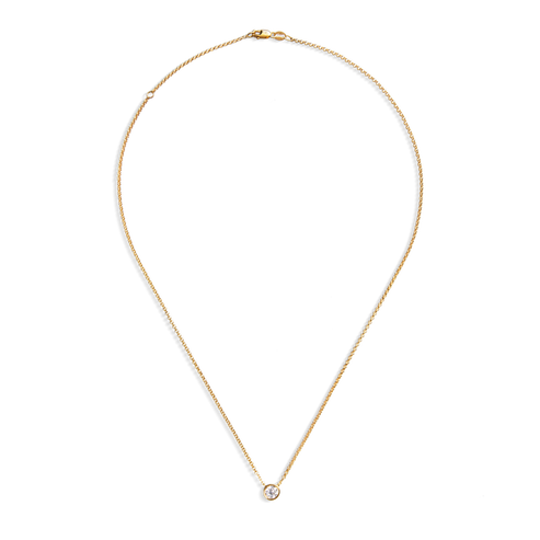 Like the North Star set in the sky, this single diamond pendant is a stunning centerpiece that needs no other adornment. Perfect for wearing alone or layering, this Round Diamond Bezel Set Pendant Necklace is proof that sophistication needs no other adornment. Sustainability and fair labor practices are integral to our supply chain; we are committed to ethically sourcing and trading practices to ensure we are providing the highest quality products to our customers.