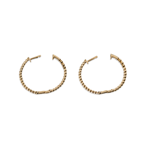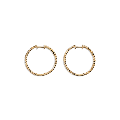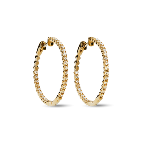 Elegant from every angle, these Diamond Hoops feature an eternity design for an unmistakably classic statement. Crafted meticulously from white or yellow gold, Brilliant Cut Diamonds are placed along the inner and outer edges for maximum sparkle. Featuring a secure hinge-lock closure, these iconic staples can be dressed up or down effortlessly.