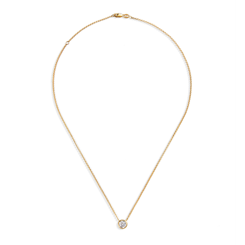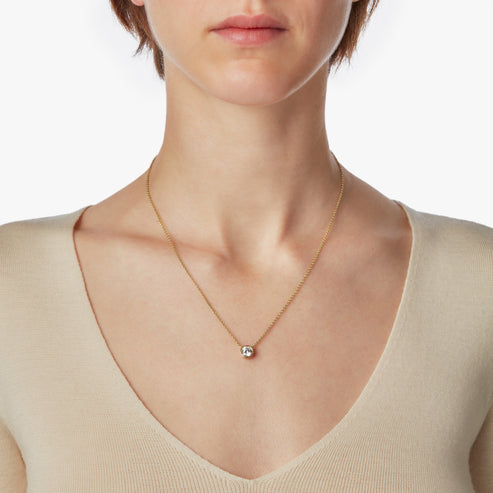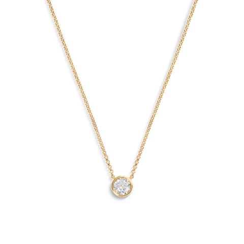 Like the North Star set in the sky, this single diamond pendant is a stunning centerpiece that needs no other adornment. Perfect for wearing alone or layering, this Round Diamond Bezel Set Pendant Necklace is proof that sophistication needs no other adornment. Sustainability and fair labor practices are integral to our supply chain; we are committed to ethically sourcing and trading practices to ensure we are providing the highest quality products to our customers.