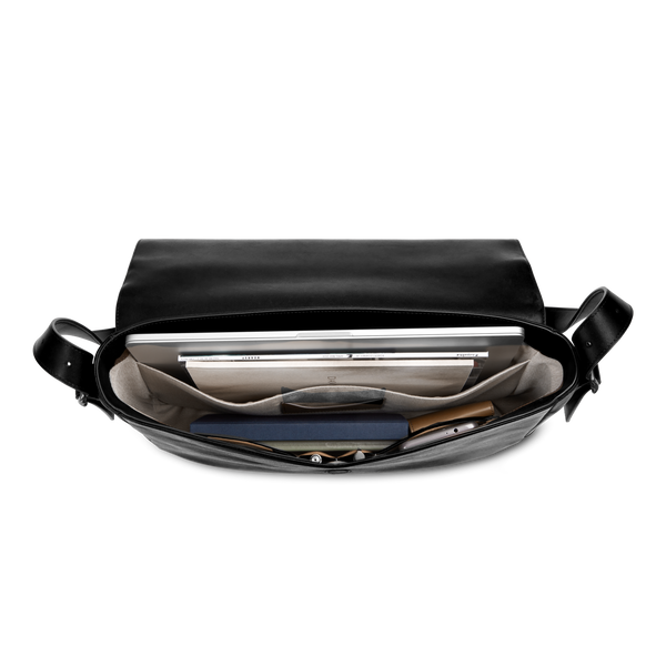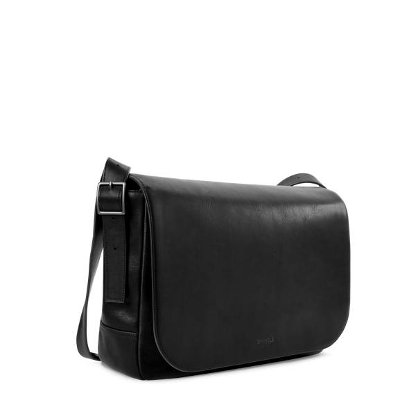 Looks smart. Works smart. The Runwell Messenger is win-win with Its timeless, post-bag style simplicity. Crafted from premium Navigator leather, it will only look better with time. Lift the magnetic leather flap to find lined interior with two slip pockets for your phone and accessories, two for writing utensils, and padded laptop sleeve that fits up to 15 laptop. Adjust the leather crossbody strap to the length that suits your style. Note: Leather color and markings will vary from batch to batch making your piece unique to you. Due to the natural variability of leather, the appearance of the product you receive may differ from the product pictured but is within Shinola color range standards for natural materials.