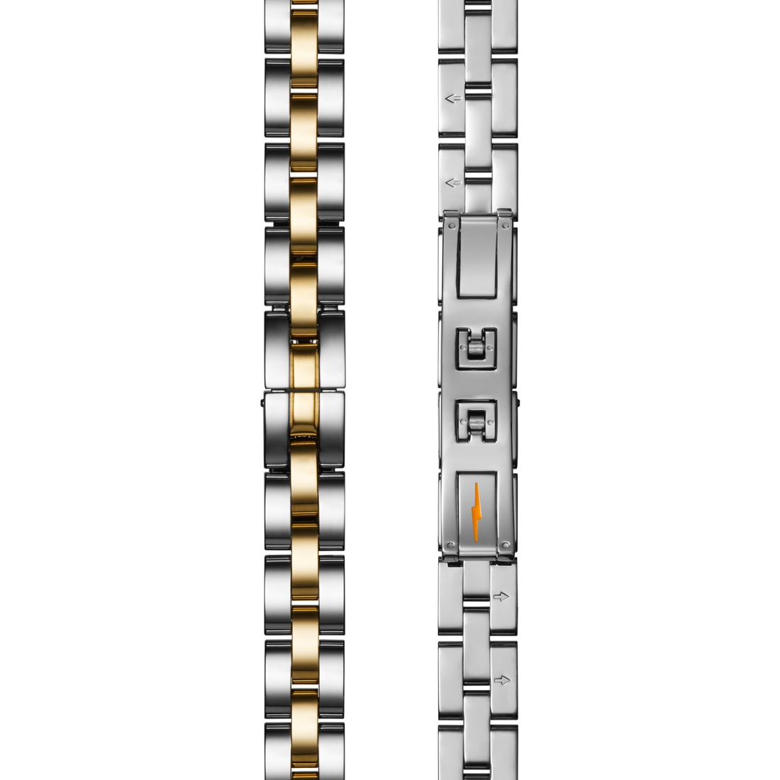 The warm two-tone gold and stainless steel case and bracelet complete the look of this iconic Detroit-assembled watch.