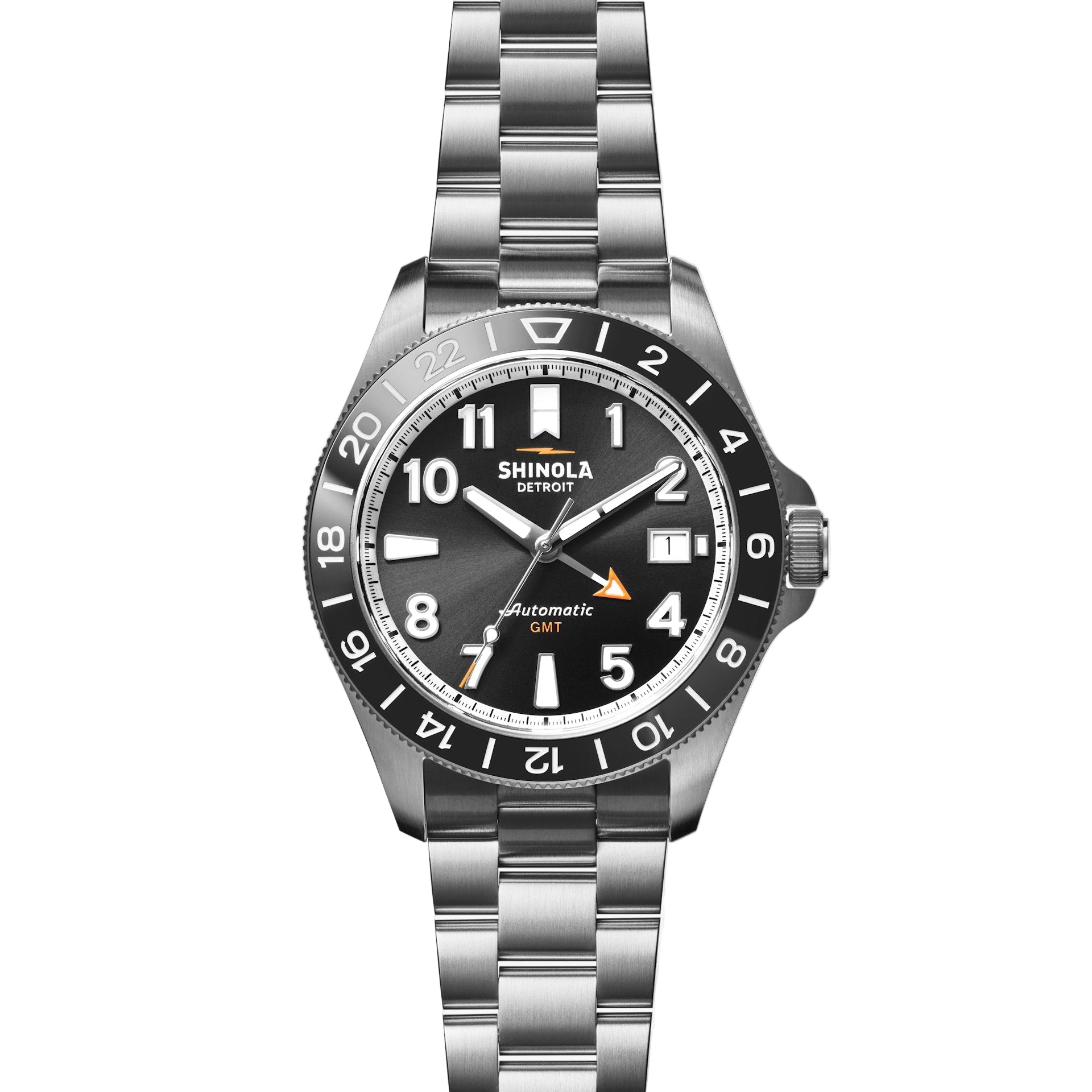 First developed for commercial airline pilots in the 1950’s, GMT watches are the perfect traveler’s companion. The 40mm Shinola Monster GMT automatic watch features a fourth hand that rotates once every 24 hours—meaning the wearer can check against the ceramic bezel marks to track time in multiple time zones. A sapphire crystal case back window reveals the complex inner workings of the Sellita SW330-2 movement inside. An additional #tide® ocean bound plastic woven strap releases easily for on-the-go swapping with the innovative quick-release stainless steel bracelet. Crafted from stainless steel and rated at 10 ATM, this travel watch is fit for both land and sea. Learn more about how to track multiple time zones with the Monster GMT here.